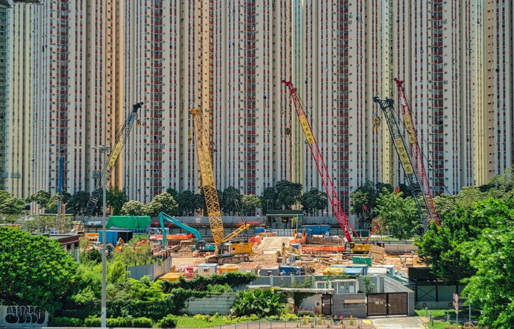 High-rise buildings, shopping complexes, and industrial facilities